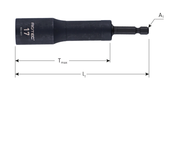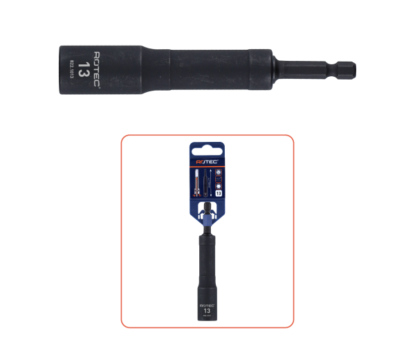 Geschikt voor het los-en vastdraaien van bouten en moeren, dankzij de inwendige lengte van 62mm ook geschikt voor het los- en vastdraaien van moeren op draadeinden.